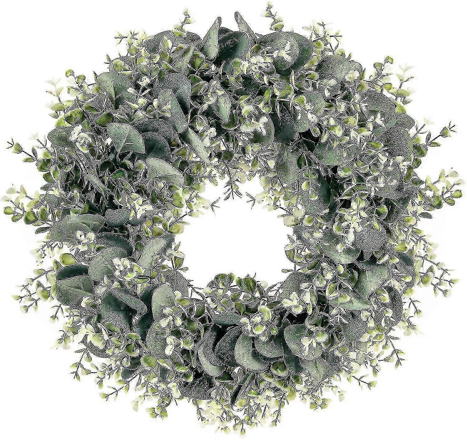 Artificial Green Door Wreath with Eucalyptus for Spring & Summer Decorating - 16 Inch Home Wall Decoration