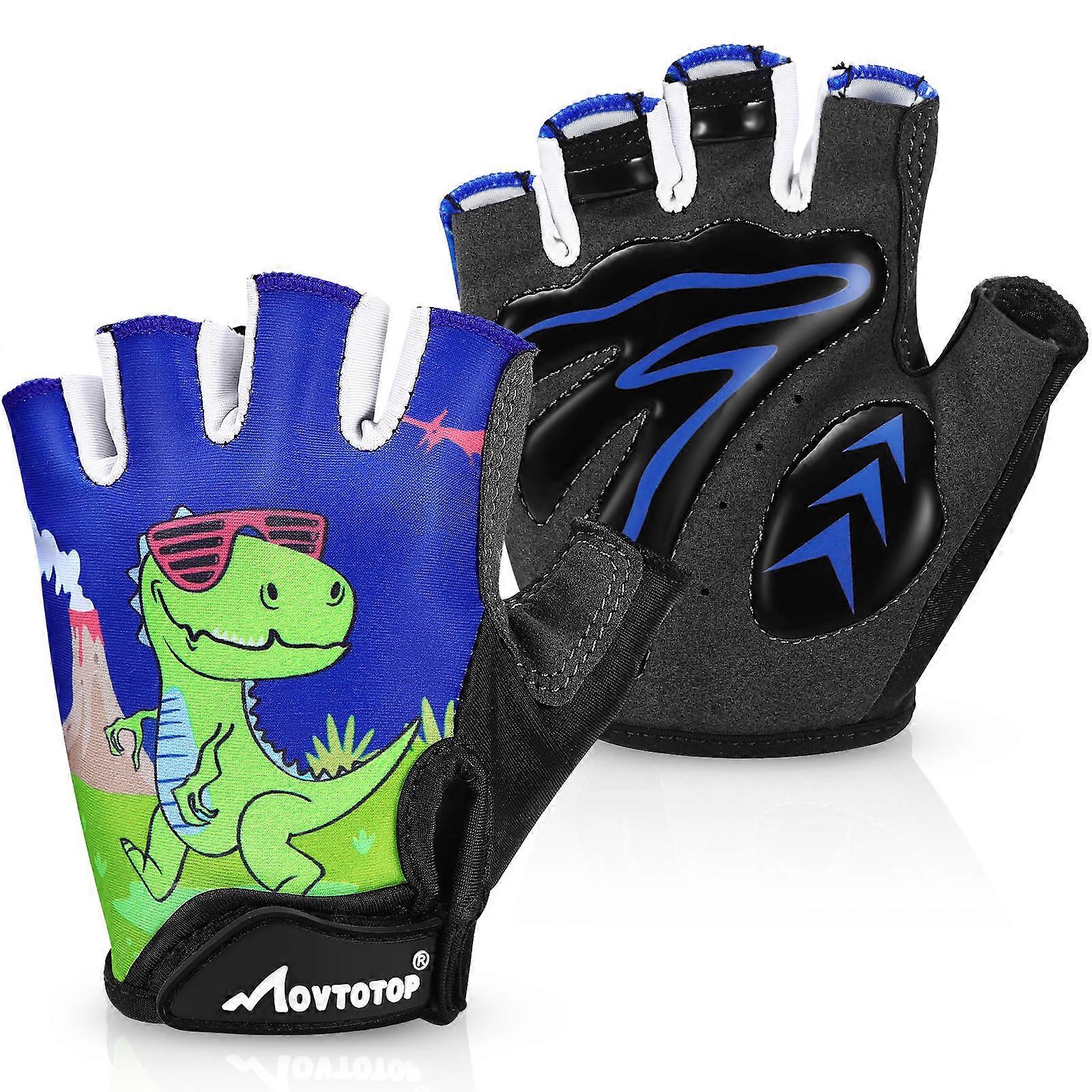 Youth Bike Gloves Childrens Riding Gloves Dinosaur Pattern Sweat-Wicking Grip Enhancement Protection From Blisters 1 Pair