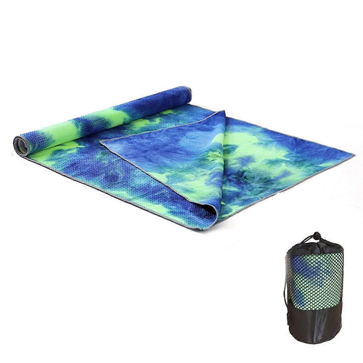 STAY IN PLACE: The textured non-slip surfaceand provides a firm grip for your hands and feet. Perfect to admit any loss of traction from the fish scale design when your hands are wet, makes you feel comfortable doing all poses on your mat. SUPER ABSORBENT & QUICK DRYING: Good absorption of sweat during yoga practice and drys faster. ULTRA-LIGHT & ULTRA-THIN:Thinner than a regular towels, more like a sheet.Comes with a travel bag, you can pack your yoga towel for easy carrying and storage. CATCHING EYES DESIGN: Vivid color patterns no worry about getting bored with your monotonic yoga mat and make the motivation to stick the exercise.Eco-friendly water based print inks will never fade, it will maintain vibrant colors even after repeated washing. EASY TO CARE: Washable with wash machine and tumble dry on low or simply hang dry. Size: 183*63cm Quantity: 1pcsFree bag 1pcs Color: Multi-color optional Material: fine fiber + resin particles Weight: 530g
