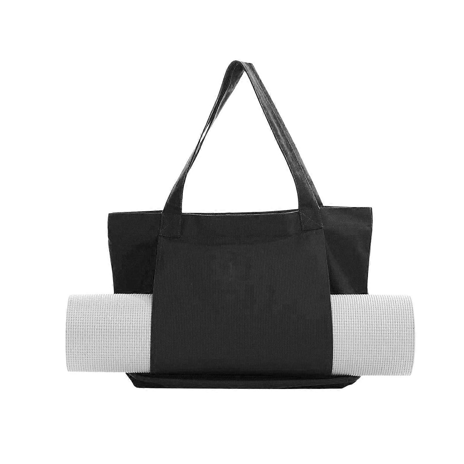 Yoga Mat Bag - Canvas Tote, Large Capacity Carryall for Pilates Equipment, Outer Pocket, Durable Black