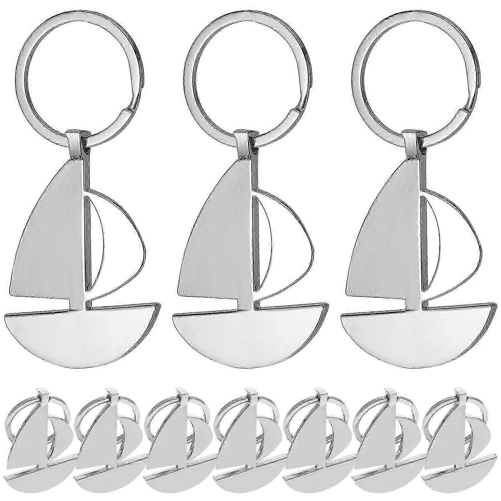Sailboat Ship Metal Keychain Charms - 10 Pack Handmade Nautical Boat Key Rings for Keys