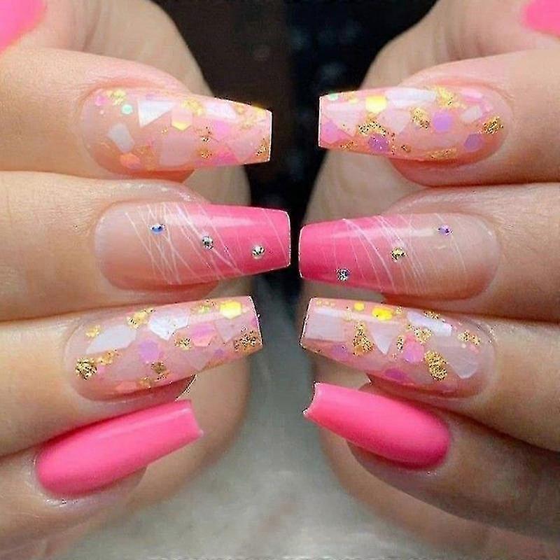 European And American Wearing Nail Art Ins Shell Glitter Powder Dot Drill Manicure Patch Long Ballet Nail Bonus: Get a free professional-grade nail f