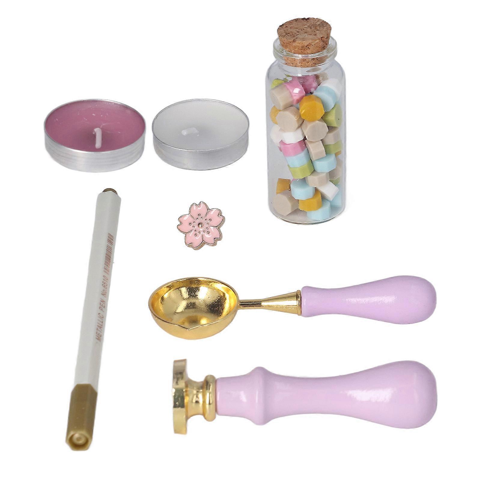 Wax Stamp Kit European Retro DIY Coloring Wax Stamp Sealing Kit with Wooden Stamp Handle Sakura Brooch for Envelope Invitation Item Type: Wax Stamp Kit Material: Log, Wax, Alloy