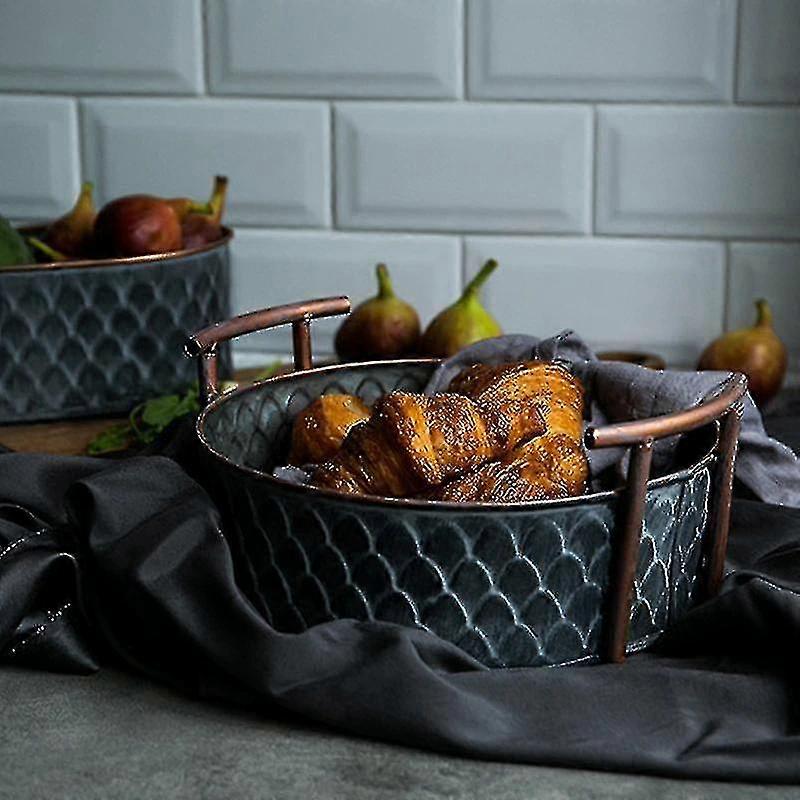 European Handcrafted Vintage Metal Trays With Handles Kitchen Storage For Home Decor|storage Trays*yt
