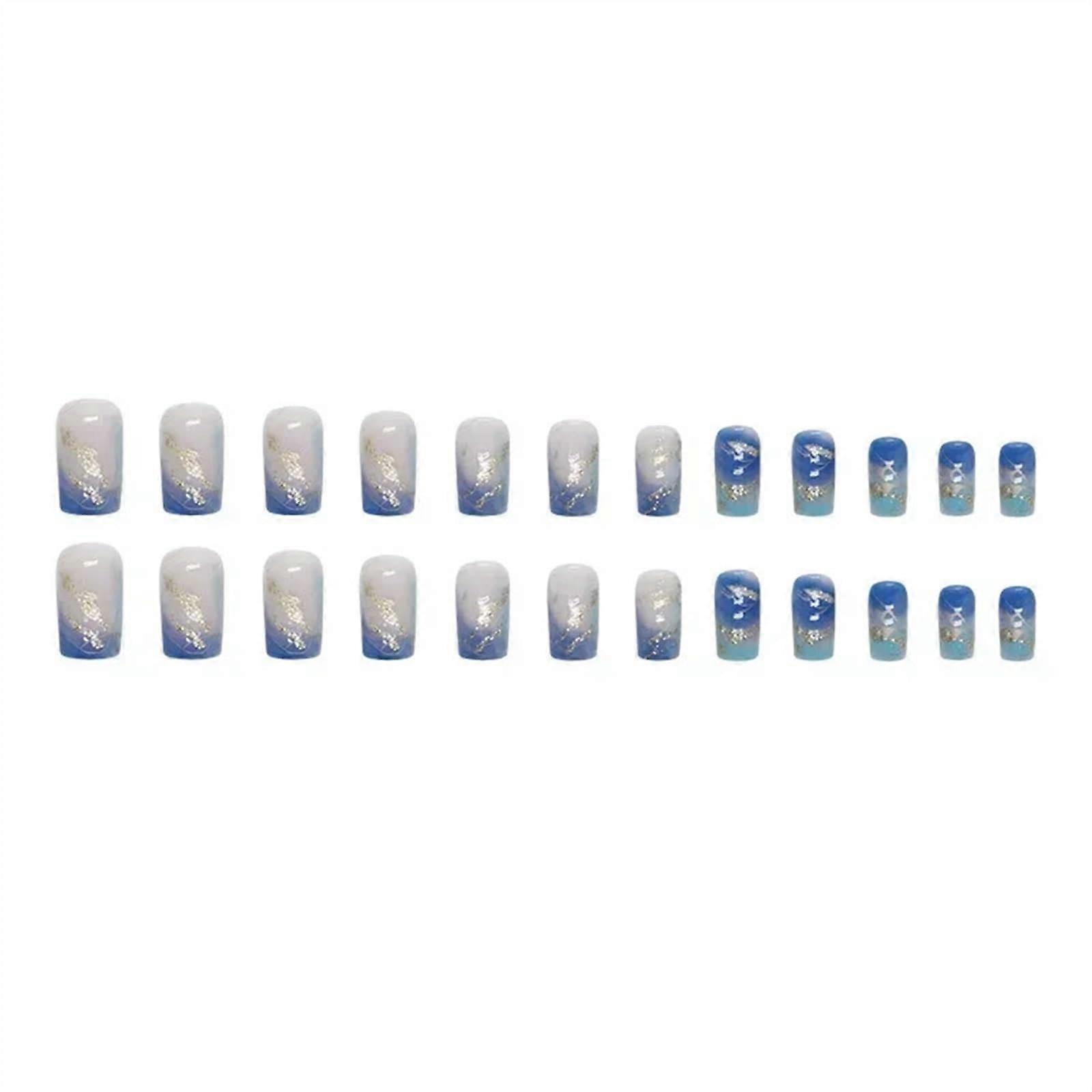 European and American Mid Length European Style Cool Blue Halo Dyed Nail Art with Gold Foil Lines for Wearing Armor Ref: 9805