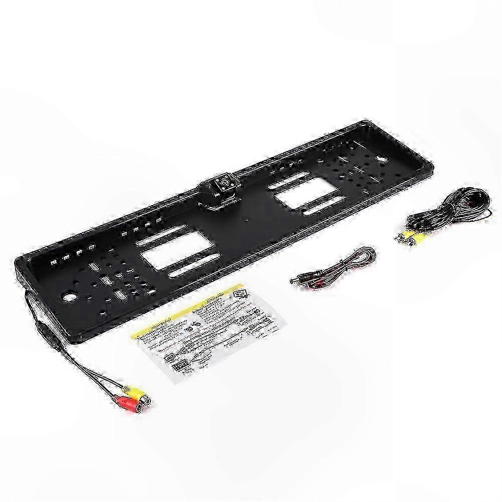 European Style License Plate Frame with LED Rear View Camera, Night Vision, IP65 Waterproof, White Light (Black)