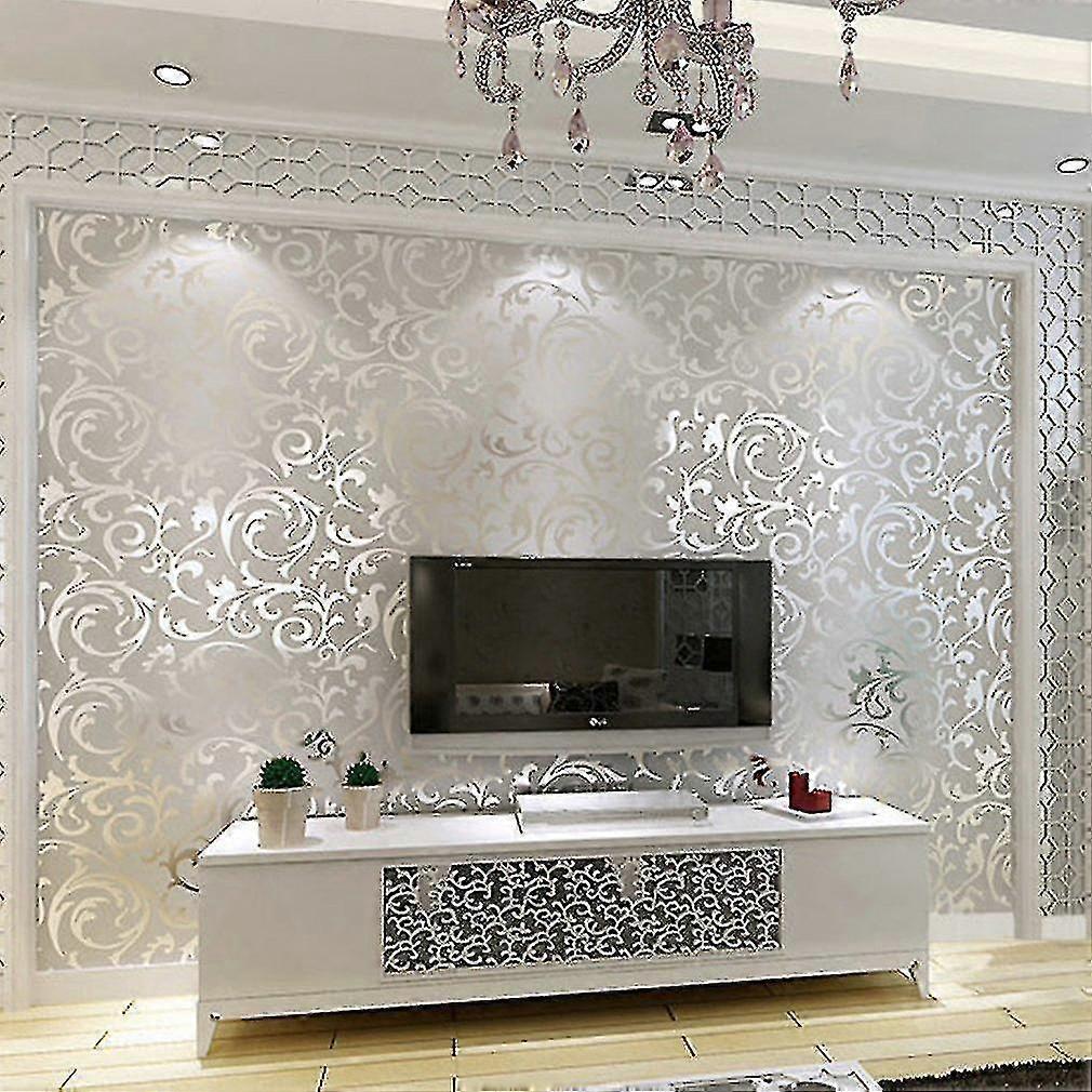 European Style Luxury Damask Non-woven 3d Wallpaper Simple Embossed Wall Roll Paper Vertical Bedroom Home Decoration