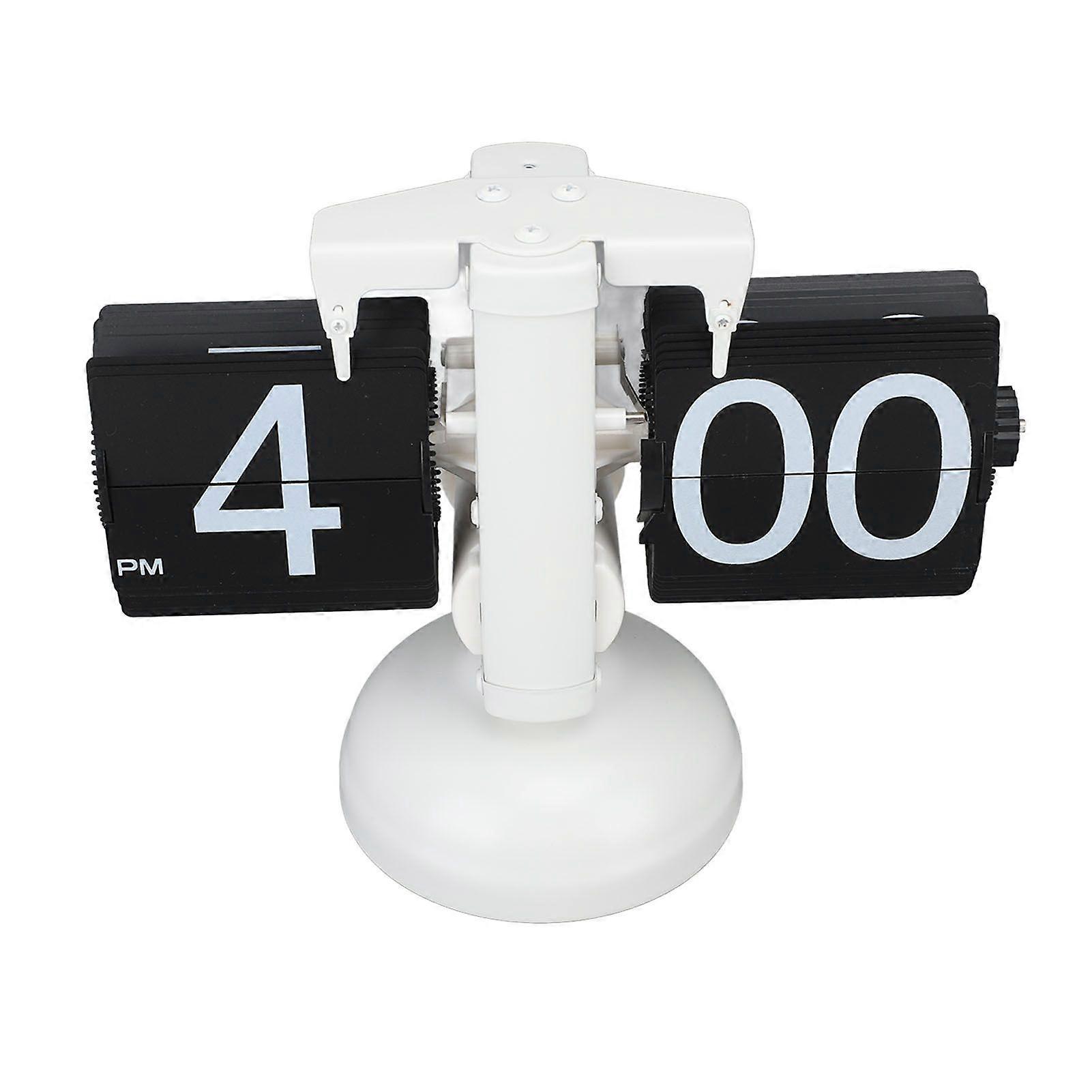 European Style Retro Digital Flip Down Clock 304 Stainless Steel Auto Mechanical Digital Flip Desk Clock for Home Livingroom 12 Hours Single Leg White