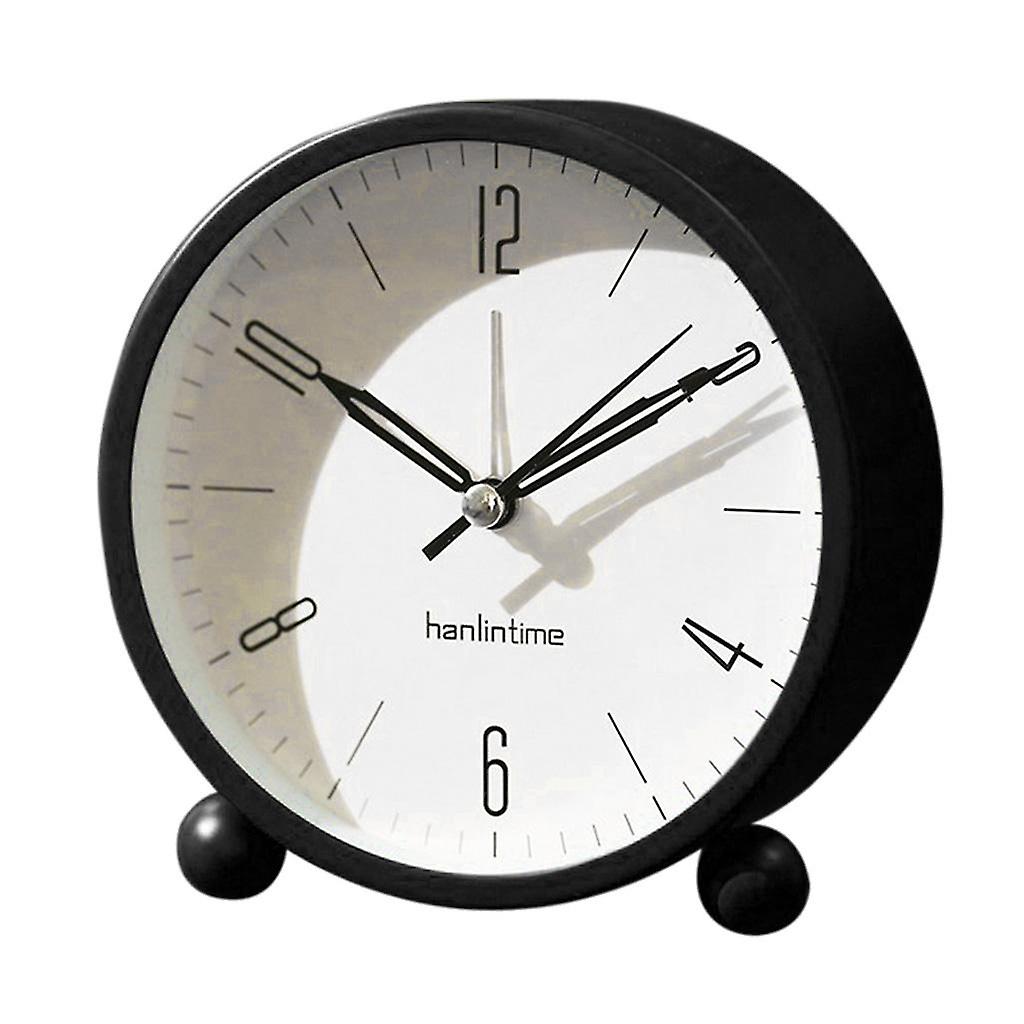 European Round Battery Alarm Clock Desktop Table Bedside Clocks Decor Black