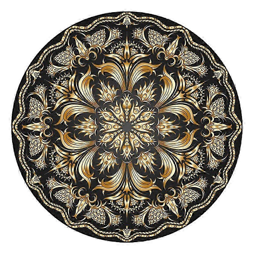 European Luxurious Round Area Rug Pad Vintage Mandala Lotus Flower Print Bedside