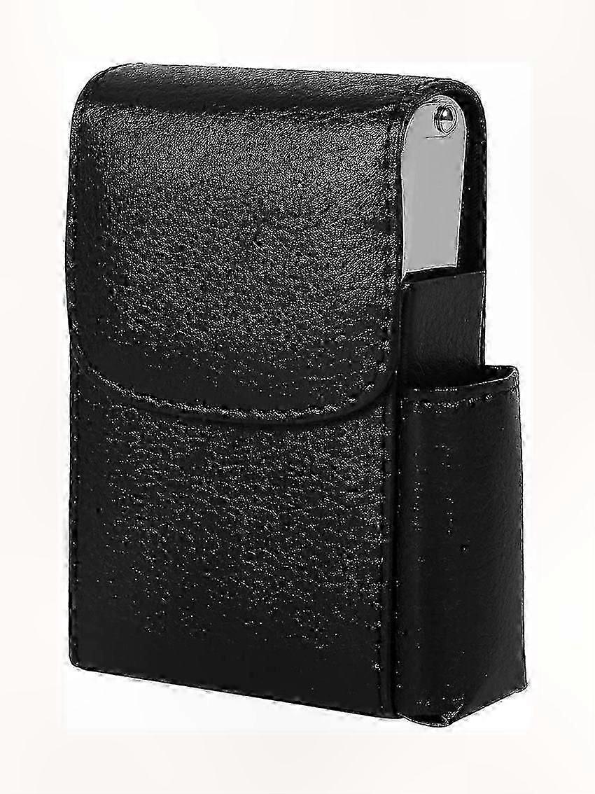 Leather Cigarette Case with Lighter Holder, Black Cigarette Box for Storage