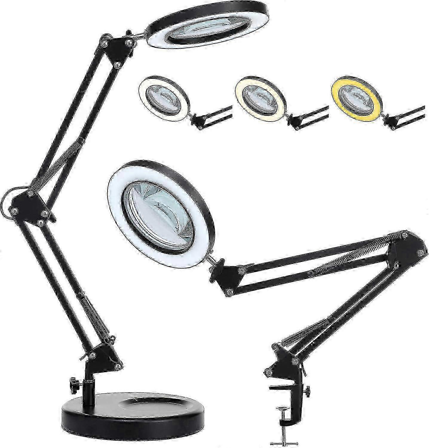 5X Magnifying Glass with Light and Stand, 2-in-1 Real Glass Lens Magnifying Desk Lamp with Clamp, 3 Color Modes, Stepless Dimmable Magnifier Light for