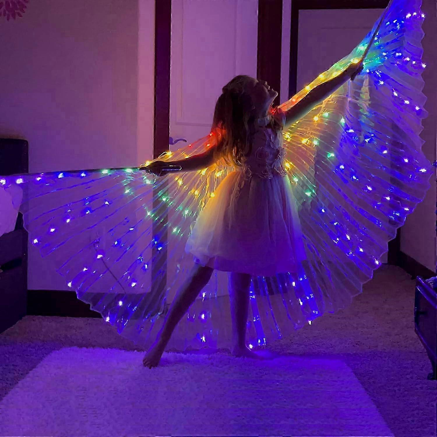 Light Up Wings LED Butterfly Wings Belly Dance Wings with Telescopic Stick for Stage Show Halloween and Christmas Party