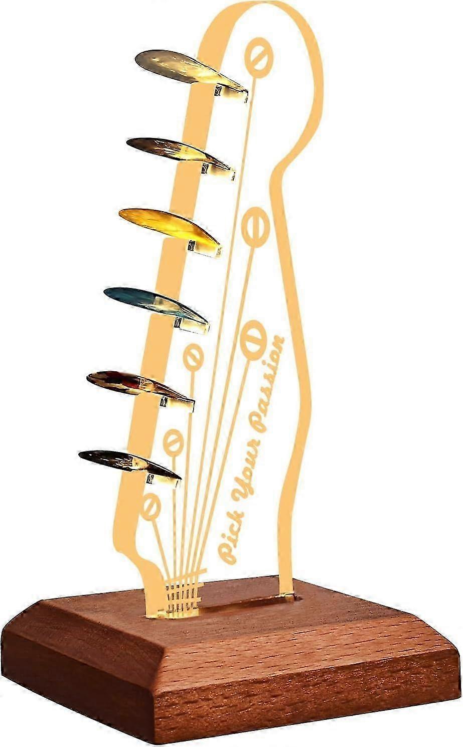 Light Up Guitar Pick Holder, Acrylic Electric Guitar Headstock Shaped Pick Holder with Wooden Base f