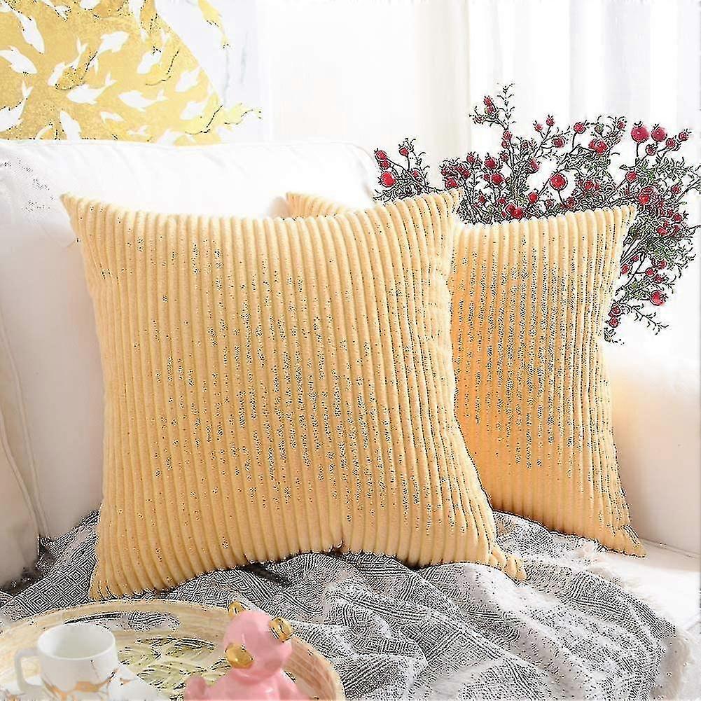 Light Yellow Striped Cushion And Cushion Cover Set Of 2, Soft Corduroy Decorative Square Cushion Cover Cushion Covers Pillow Case, Home Decorations Fo