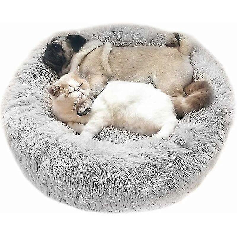Light Gray Round Plush Pet Bed Round Basket Companion Nest Thick Stuffed Animal Nest Cushion Compatible Cats And Dogs Compatible Deep Sleep