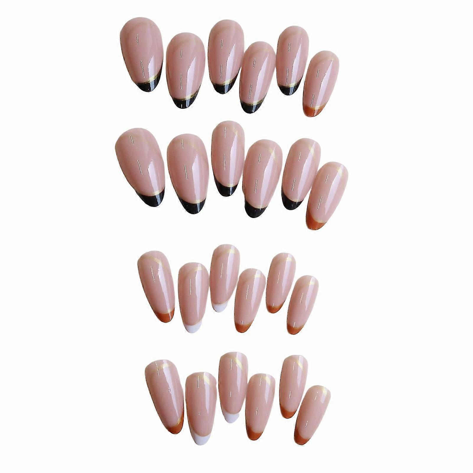 Light Pink With Black White Tip Decor Fake Nails Ultra-flexible Long Lasting Fake Nails SHEIN Style