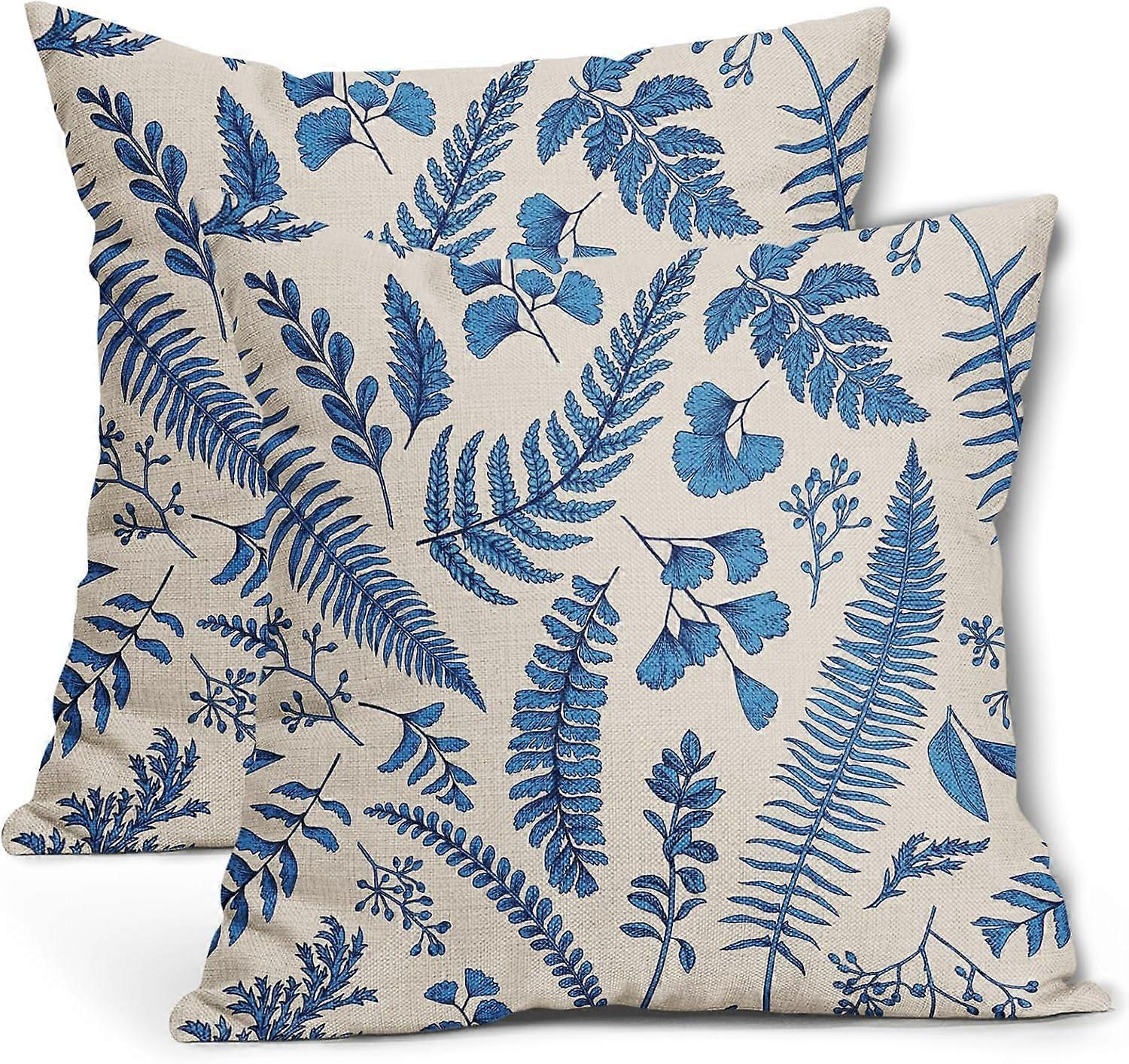 Light Blue Leaf Plant Pillow Covers 16X16 Inch Set of 2 Tropical Fern Herbs Botanical Leaves Floral Decorative Pillow Cases Vintage Cushion Case Farmh