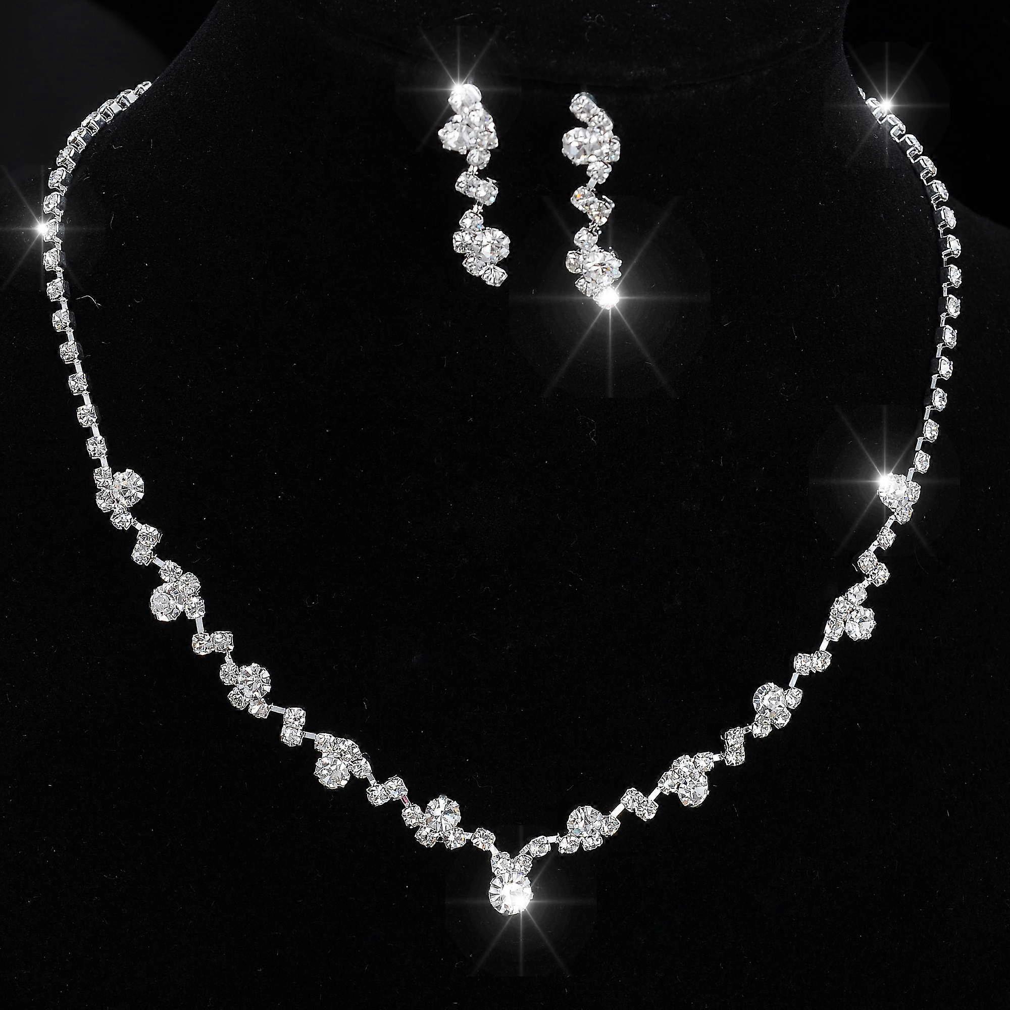 Light Luxury Wedding Bridal Bridesmaid Crystal Zircon Beads jewelry set Tennis Choker Earrings Rings and Bracelet Necklace Set