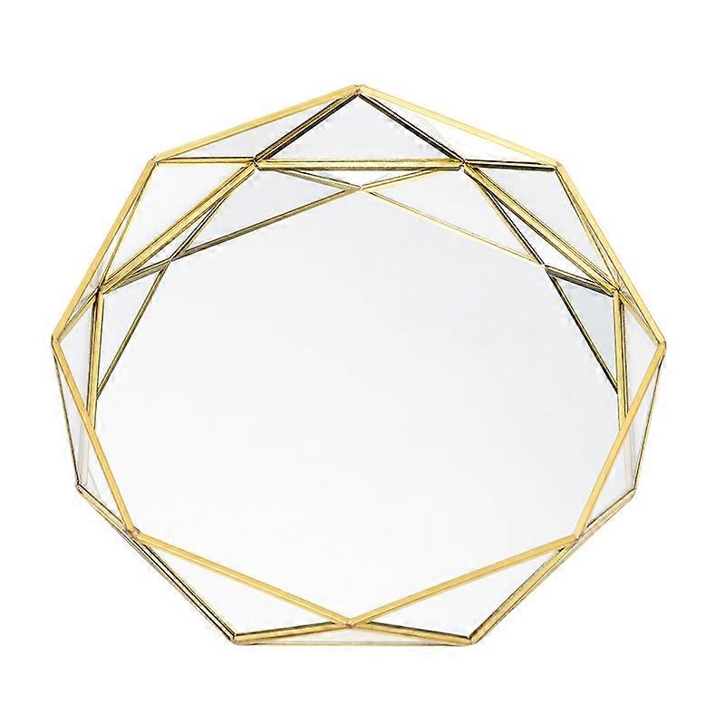 Light luxury geometric round glass plate, ins golden western cake dessert plate, glass cosmetics storage plate, trinket plate, cake dessert plate, dec