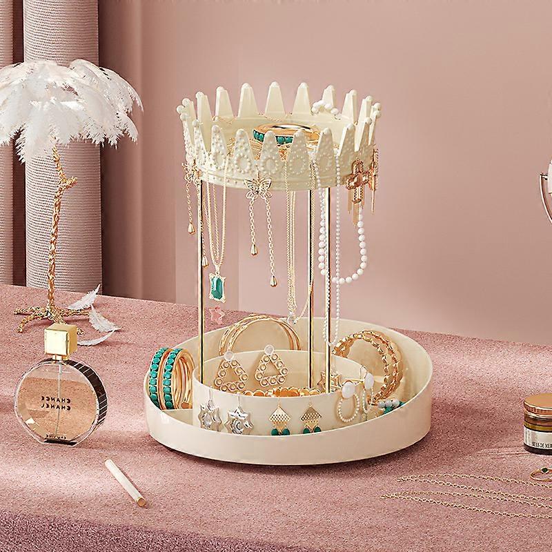Light luxury 360 rotating cosmetics storage jewelry box, crown molding design on the top, bathroom tabletop dressing table organization second-story s