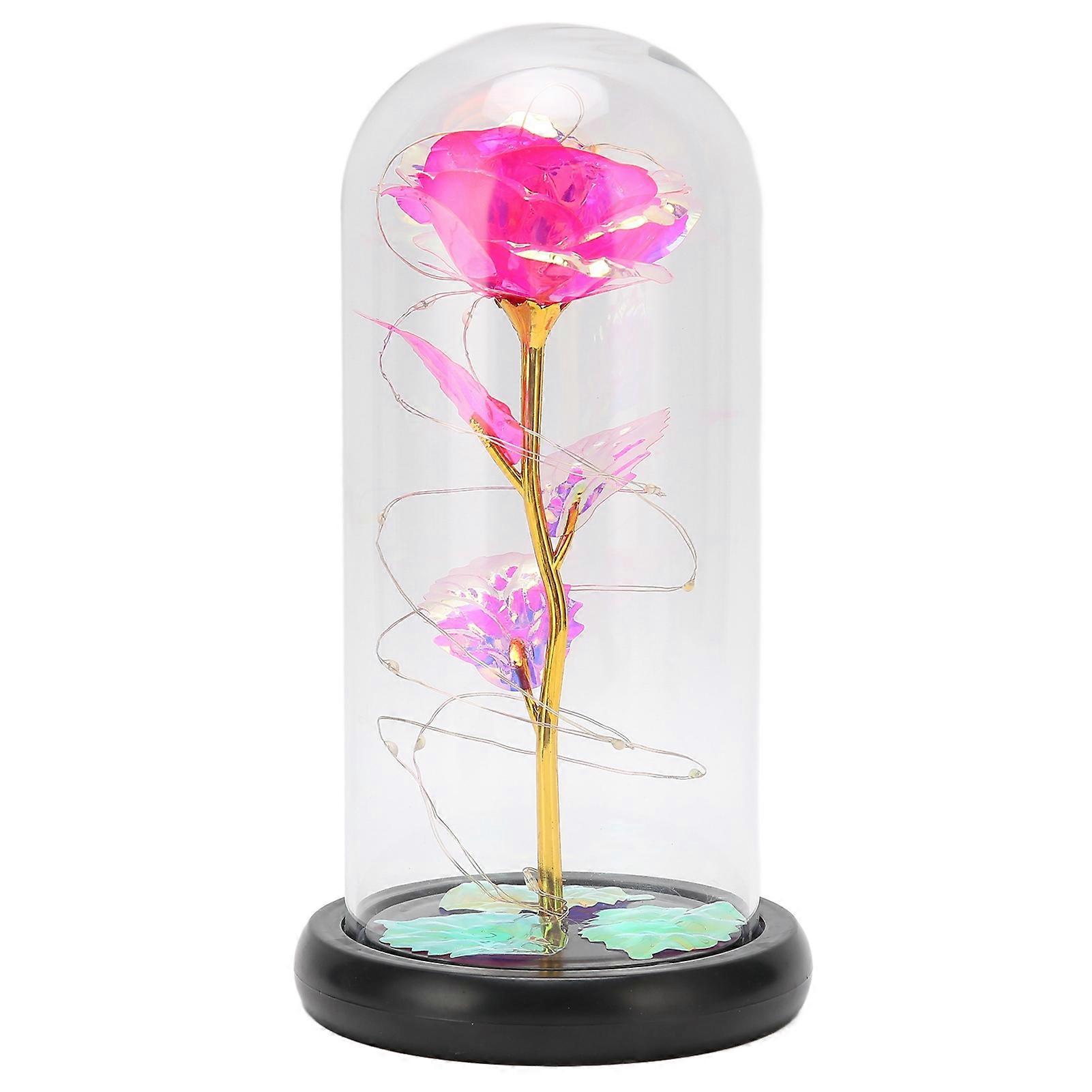 Rose in Glass Dome with Lights LED Artificial Rose Flower Gifts Light Up Rose in Glass Dome for Women Mom Grandma Wife Pink