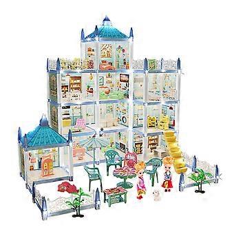 Doll House Playset with Lights 4-Story Villa 11 Rooms DIY Princess Castle Dollhouse Toy with Mini