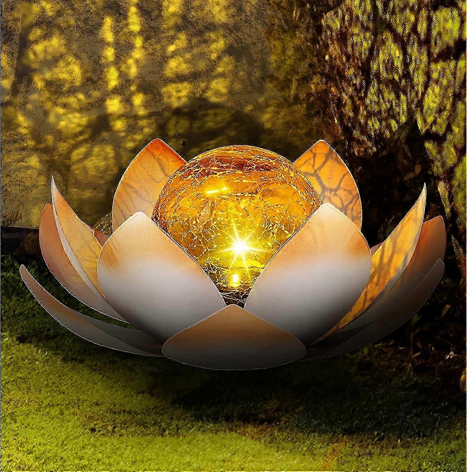 Lights Outdoor Garden, Crackle Globe Glass Lotus Decoration, Waterproof LED Metal Flower Lights for Patio,Lawn,Walkway,Tabletop