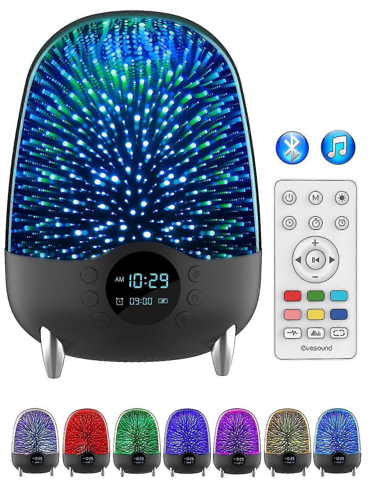 Colour 3d Galaxy Star Night Lights, Black BaseProduct dimensions 14D x 14W x 19H centimetresSpecial feature Hand Free Call, Time Display & Auto-Off Timing & Alarm Clock, Brightness stepless dimer of warm white Light, Remote control within 10 meters, 3D Galaxy Starry Effect, Portable & rechargable & cordless table lamp, Audio play supporting bluetooth 5.0, TF card, FM radio, Auxin-input, 70mm/8W/360 Hi-Fi Stereo Wireless Bluetooth Speaker, Night lights with 7 colours & 4 lighting modes, Music Interactive Lighting Hand Free Call, Time Display & Auto-Off Timing & Alarm Clock, Brightness stepless dimer of warm white Light,Remote control within 10 meters, 3D Galaxy Starry Effect, Portable & rechargable & cordless table lamp,Audio7 COLOURS+4 LIGHT MODES+DIMMABLE WARM WHITE LIGHT Smart night light provides up to 7 colours (red, green, sky blue, pink purple, yellow, dark blue, warm white) and 4 light modes (static colour, RGB gradient, karaoke mode, colours auto changing). You can adjust the brightness of warm white light from 1%-100% by long-press the button on remote control. Create a multi atmosphere to suit your mood, party with friends, date your wife/husband3D GLASS STARRY NIGHT LIGHT & EASIER TO USE Exclusive handmade 3D glass technology creates a fantastic sky starry lighting effect. Add stylish decor and embellish the atmosphere of room. User-friendly remote control and button-on table lamp allow you to effortlessly control volume, skip songs, take calls, time setting, switch play or light mode. Cool gifts for teens girls boys to help kids sleep under bedtime stories and lightPORTABLE BLUETOOTH SPEAKER & HANDS-FREE Built-in the latest Bluetooth V5.0 chipset, provide wider compatibility, faster and stable connection up to 33ft. 70mm/5W/360 full-frequency magnetic speaker delivers powerful Hi-Fi stereo surround sound up to 2.48GHz, bring a feast for music lovers and an amazing music atmosphere for your party. Audio support: Bluetooth mode; TF card play mode; AUX input mode. Built-in MEMS microphone support hands-free HD callsAUTO-OFF TIMER & DUAL MEMORY FUNCTION Easily set up with remote control to turn off lighting after 10min or 30min. No worry about leaving the lights on when fall asleep or when no one is home. When you turn it on next time, the setting of alarm clock would stay same and clock will display the correct time.Tips: support use while charging & 12/24H time format8-10 HOURS LONG PLAYTIME & FAST CHARGING Rechargeable night lamp built-in large 3000mAh lithium battery, support up to 8-10H non-stop playback, 96H with min brightness, 24H with max brightness. Comes with Type-C cable, provides you with safe high-speed charging and enjoy portable night light at home, backyard, outdoor.