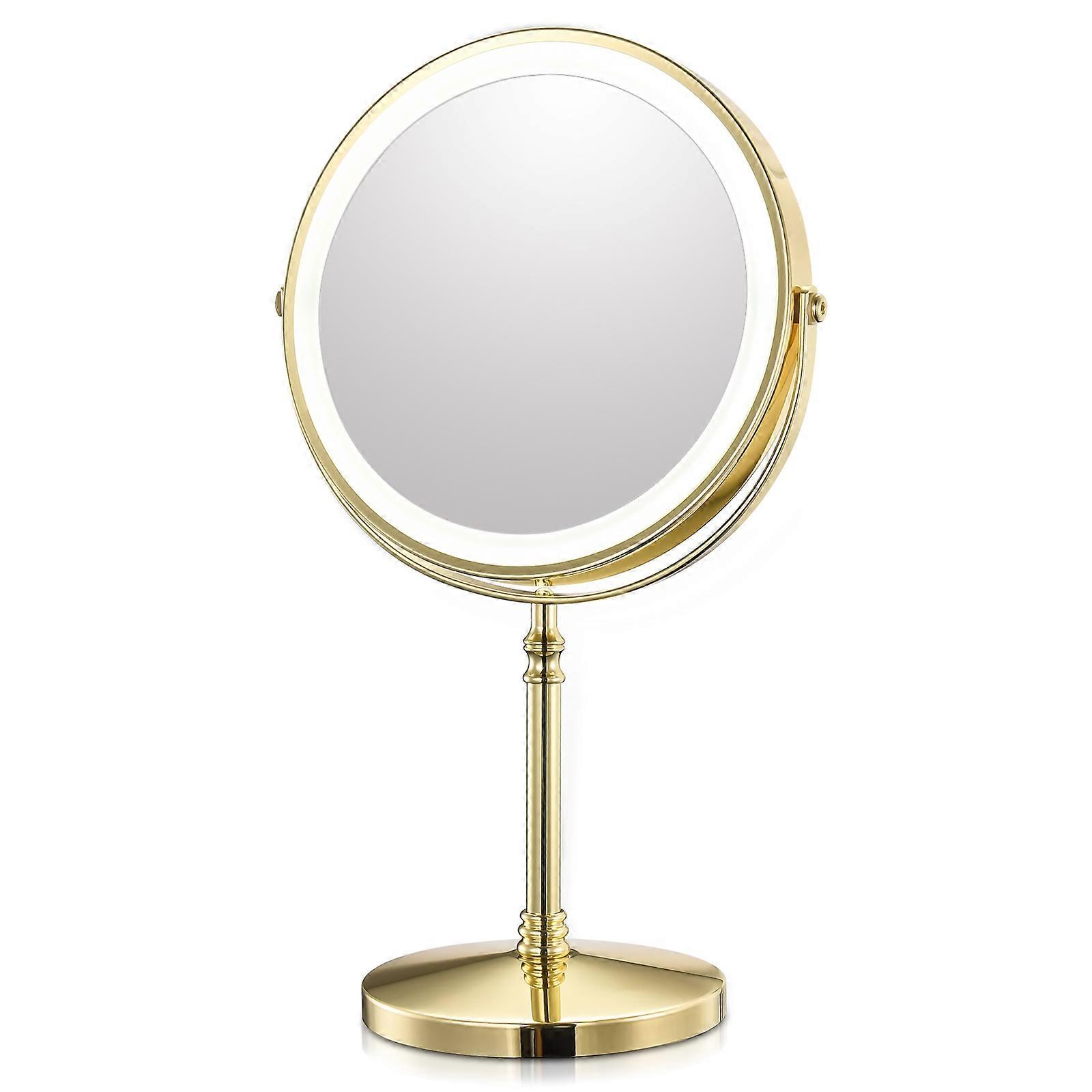 8 Inch Gold Makeup Mirror With Light USB Charging 10X Magnifying Vanity Mirror Backlit Adjustable Light Standing Cosmetic Mirror