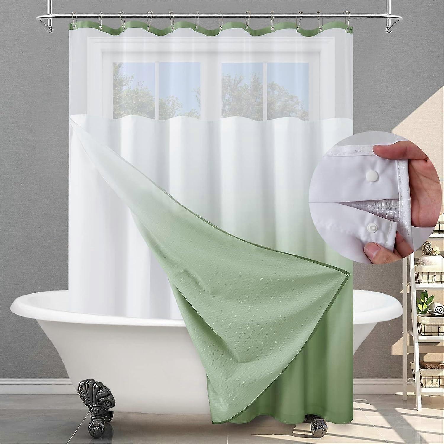 Sage Green Fabric Shower Curtain with Liner Double Layer Ombre Shower Curtain Green Hotel Style Linen Shower Curtain Set with Hooks Spa Shower Curtain