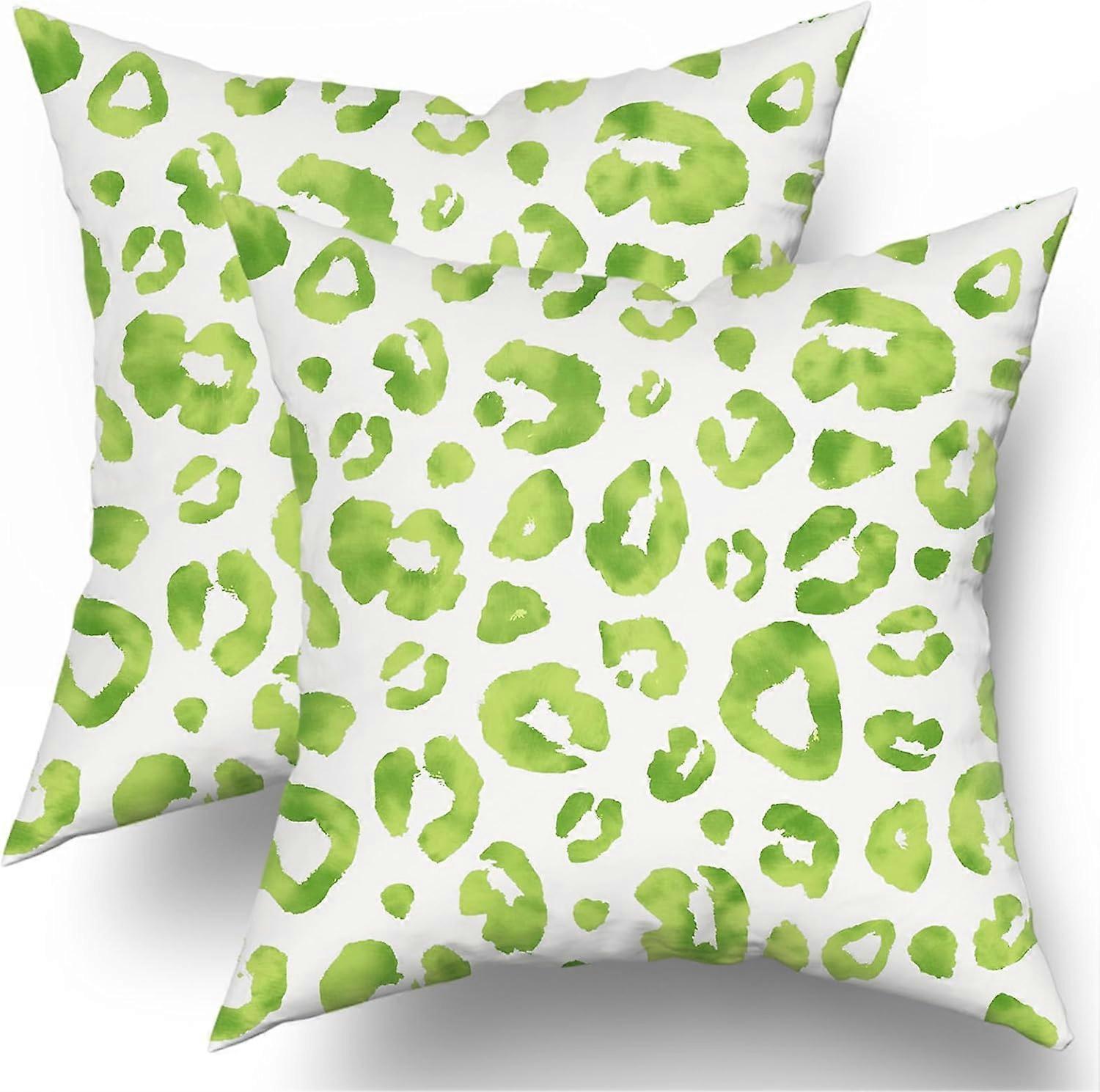 Lime Green Grey Leopard Print Pillow Covers 18X18 Inch Watercolor Gray Cheetah Decorative Pillow Cases Animal Square Throw Pillow Case Set of 2 Home D