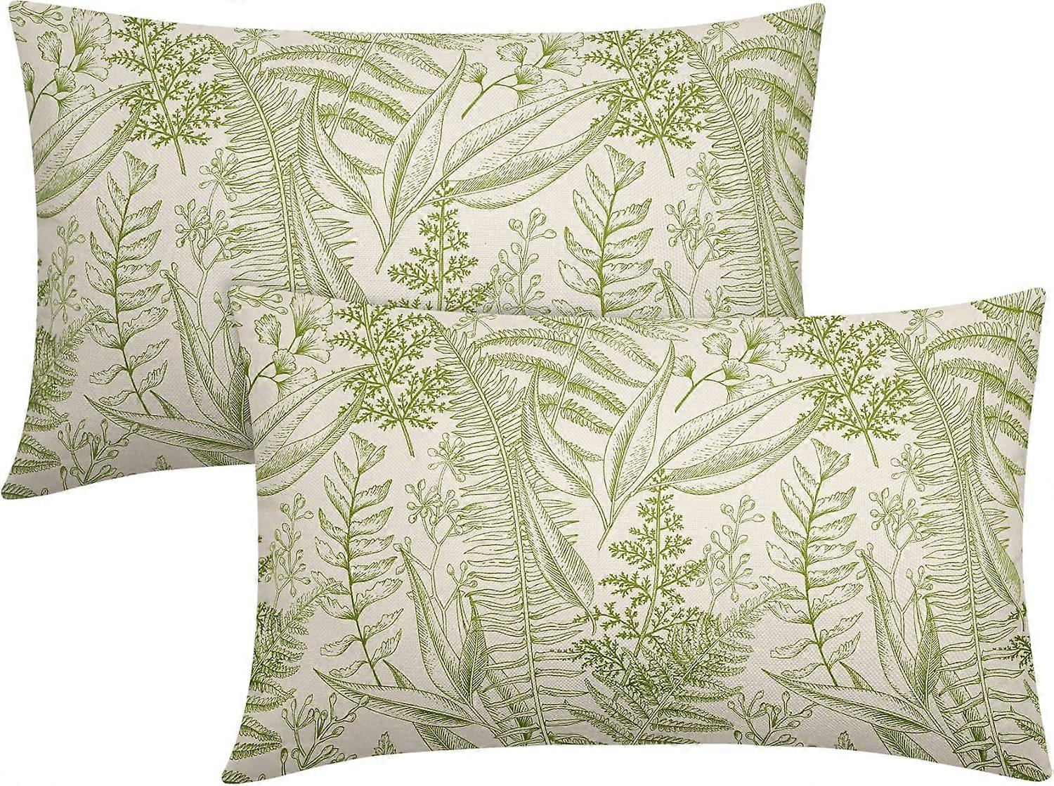 Lime Green Plant Lumbar Pillow Covers 12X20 Inch Herbs Botanical Fern Vintage Leaves Floral Decorative Pillow Cases Set of 2 Throw Pillows Farmhouse H
