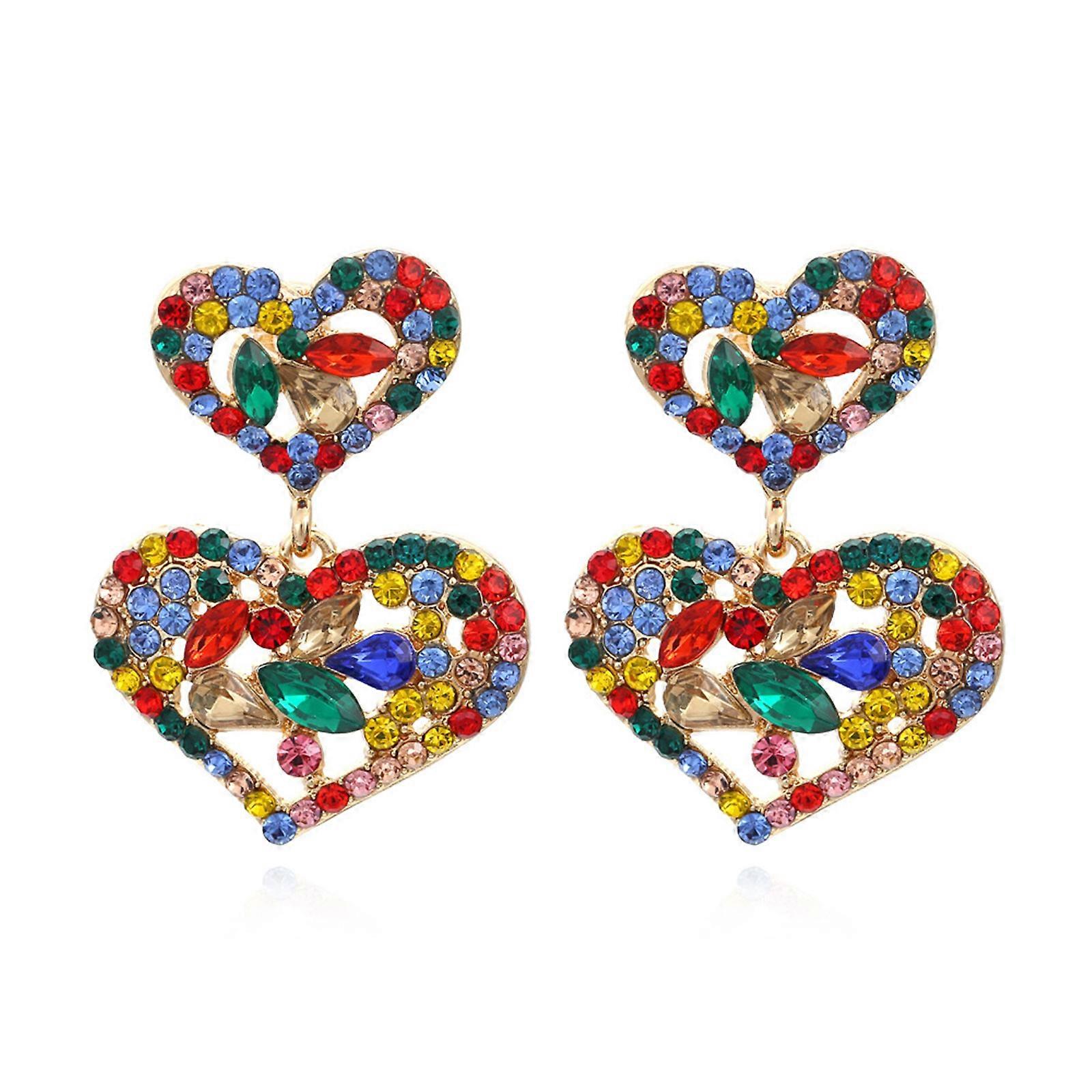for Creative Double Heart Stud Earrings with Colorful for Rhinestone Women Girl Ear Piercing Jewelry Birthday Holiday Pr