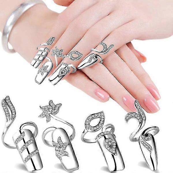 Set of 4 rhinestone fingernail rings, adjustable nail art charms