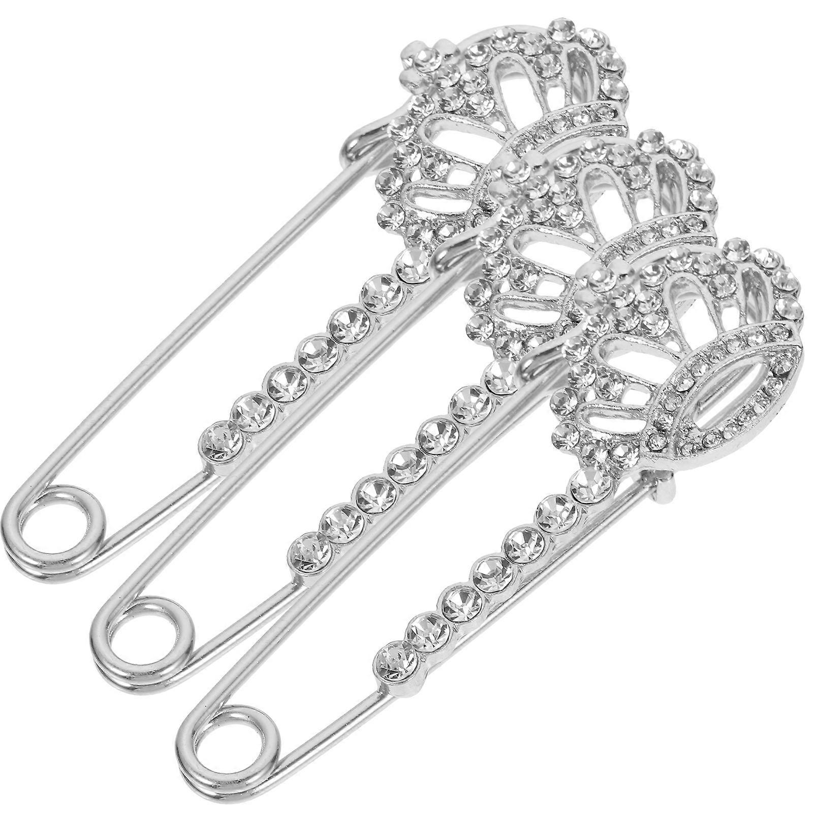 Rhinestone Crown Pin Brooch Silver for Decor 9Pcs Cardigan Shawl Pin