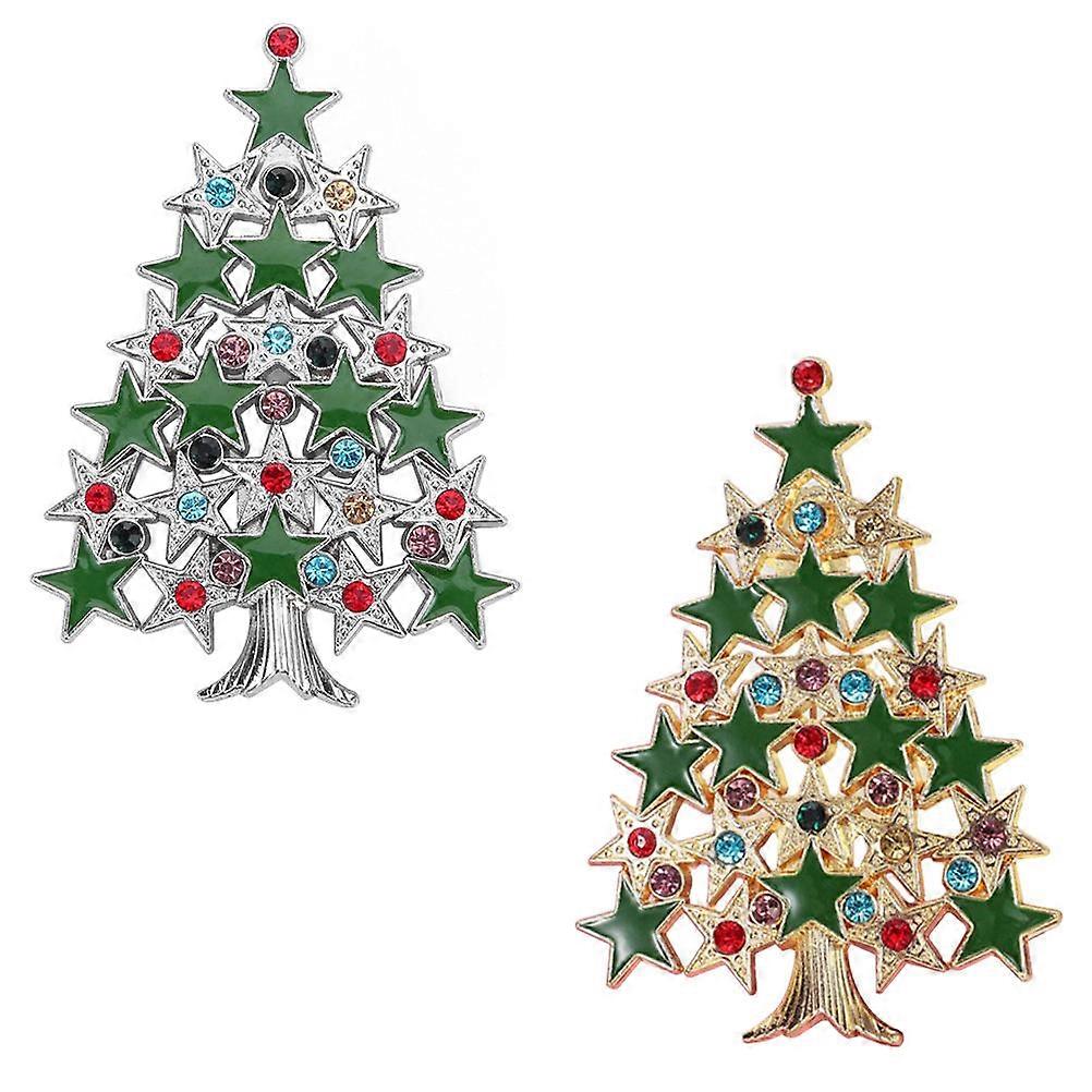 Rhinestone Christmas Tree Design Brooch 2Pcs All-Match Style Accessory For Fashion Lovers At Christmas Events In 6.1X4.5CM Size