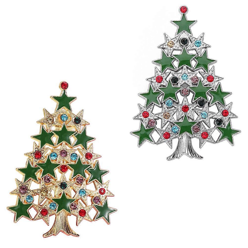 Rhinestone Christmas Tree Design Brooch 2Pcs All-Match Style Accessory For Fashion Lovers At Christmas Events In 6.1X4.5CM Size
