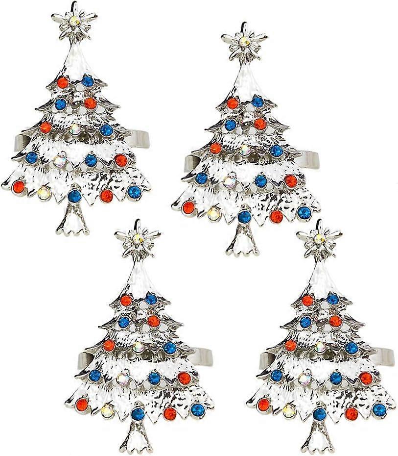 Rhinestone Christmas Tree Napkin Rings: Xmas Napkin Buckles Table Napkin Studded Holders Holiday Serviette Circle Rings Table Setting Silver4pcs)