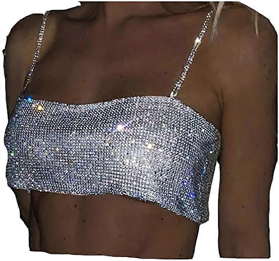 Rhinestone Crop Top Silver Sparkly Party Body Chain Glitter Crystal Bra Jewelry Adjustable Backless Chest Jewelry Club