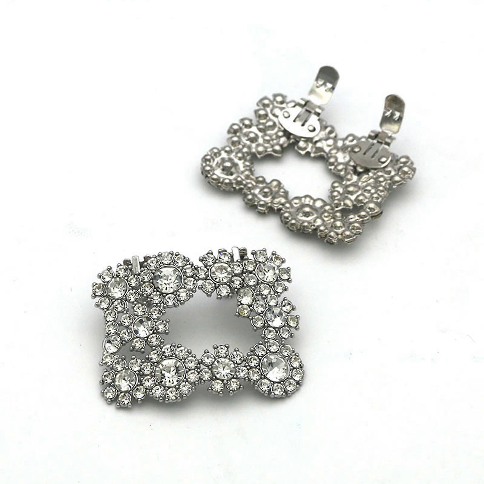 Rhinestone Shoe Decorations Clip Shoe Clamp Charm Buckle Wedding Bride High Heel Shiny Clips Accessories for Women White