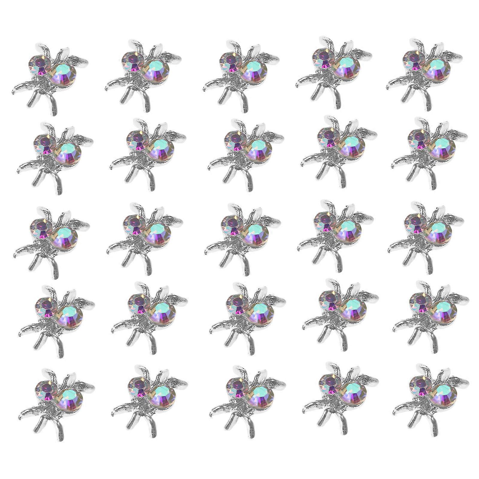 Rhinestone Spider Charm Nail Ornaments Women Halloween Christmas Wedding Party 0.3X0.8X0.8CM Silver 100Pcs