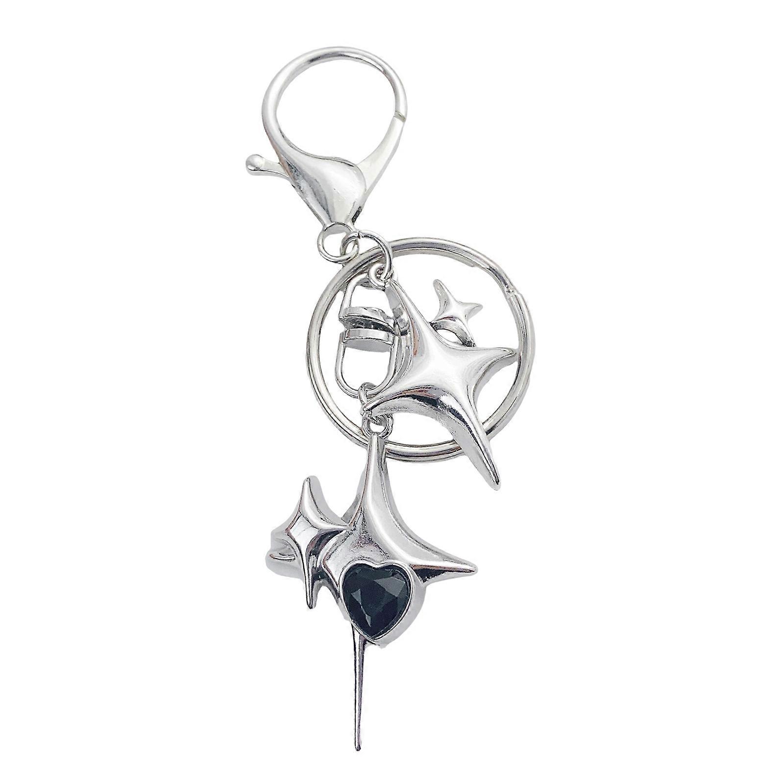 Elegant Metal Guitar Keychain with Rhinestones Detailing Handmade Star Charm Key Chain Keyring for Music Lovers