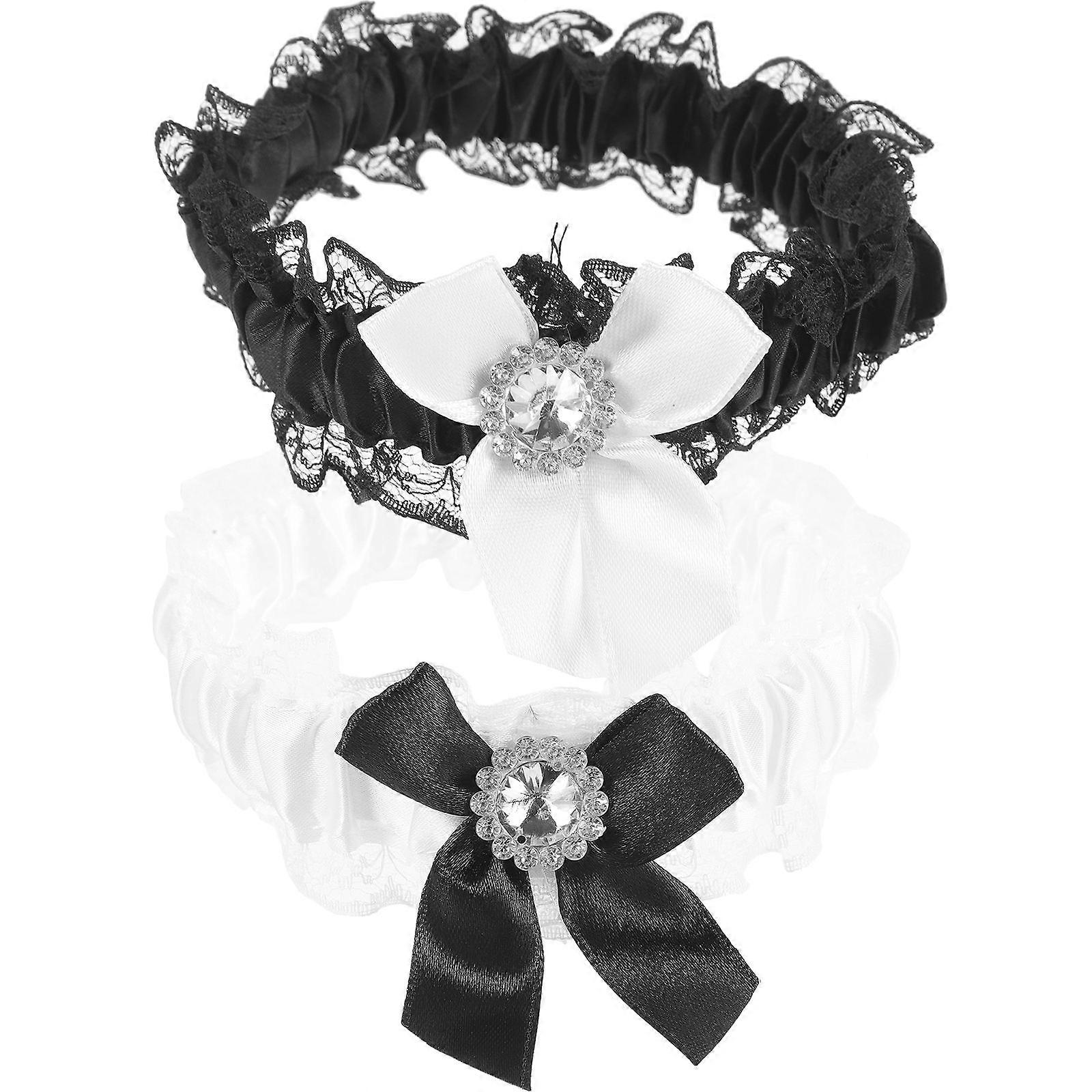 Lace Bow Garter Set with Rhinestone Trim, Elastic Leg Rings for Bridal Wedding Attire, Prom, Party, and Cosplay Events