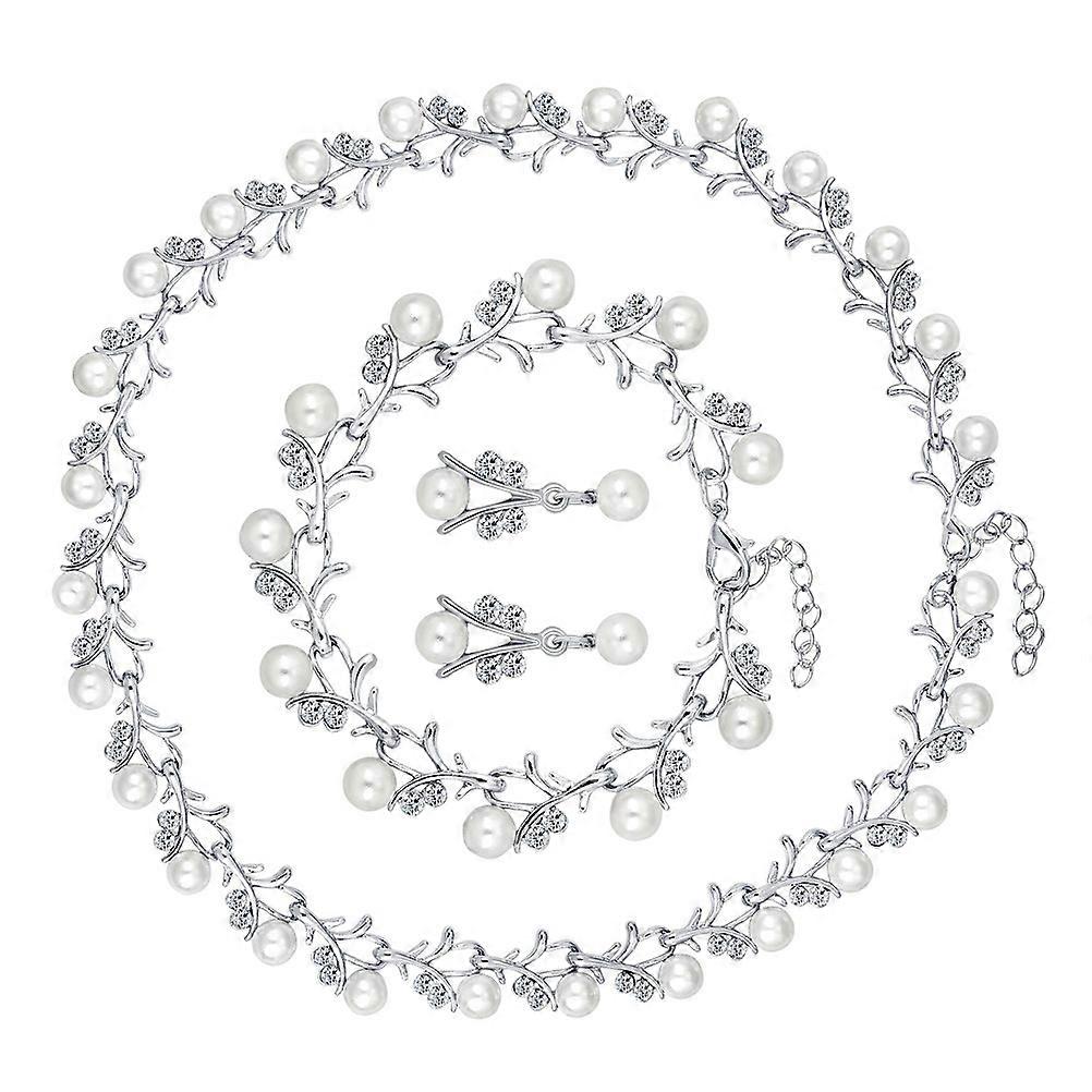 1 Set Wedding Jewelry with Rhinestone Necklace Crystal Earrings and Pearl Bracelet