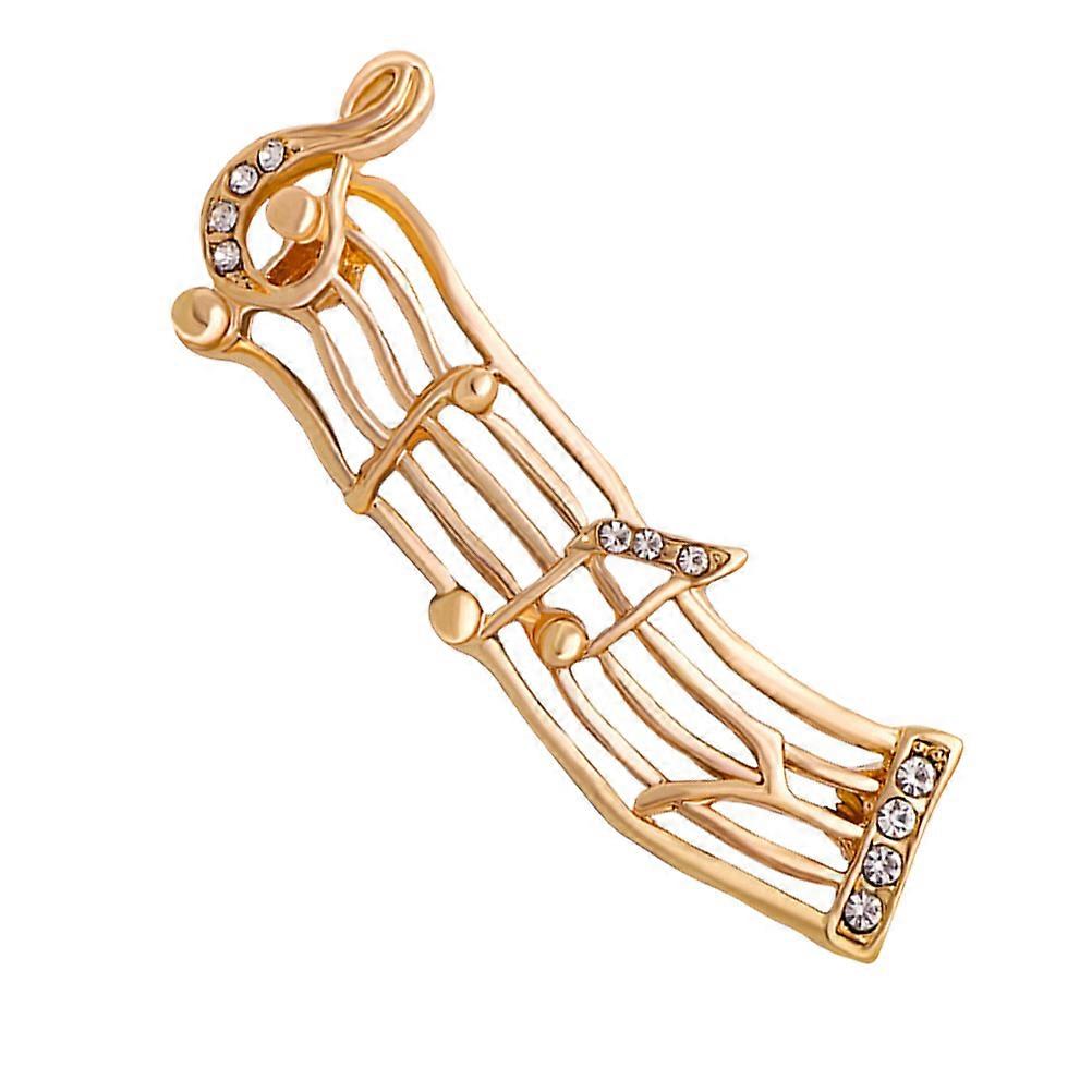 Rhinestones Note Brooch Musical Instrument Vintage Style Golden Alloy Decorative 1Pcs