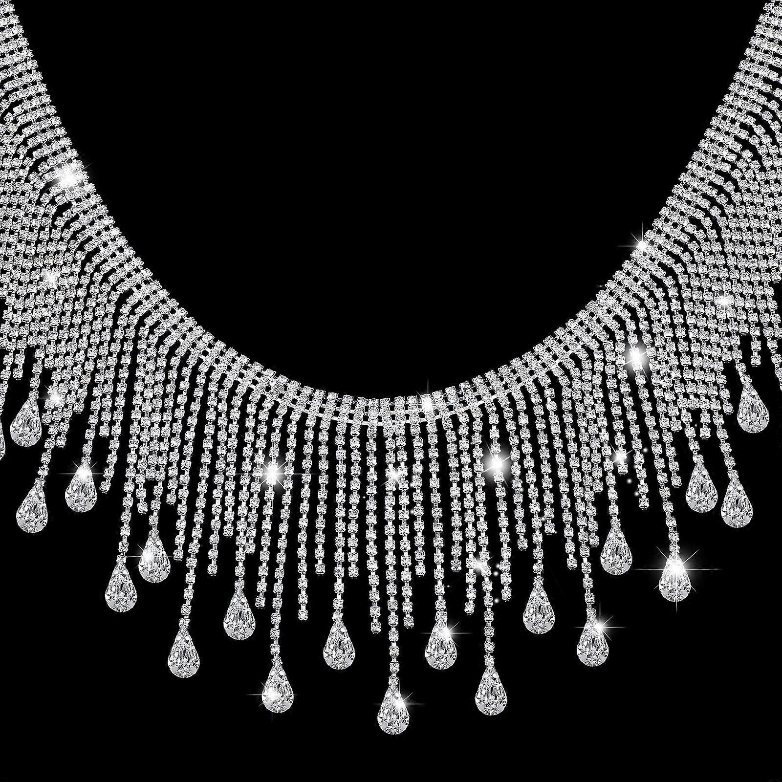 Rhinestone Fringe Trim 1 Yard Diamond Crystal Tassel Chain Applique for Sewing Crafts Clothing Accessories DIY Decoration