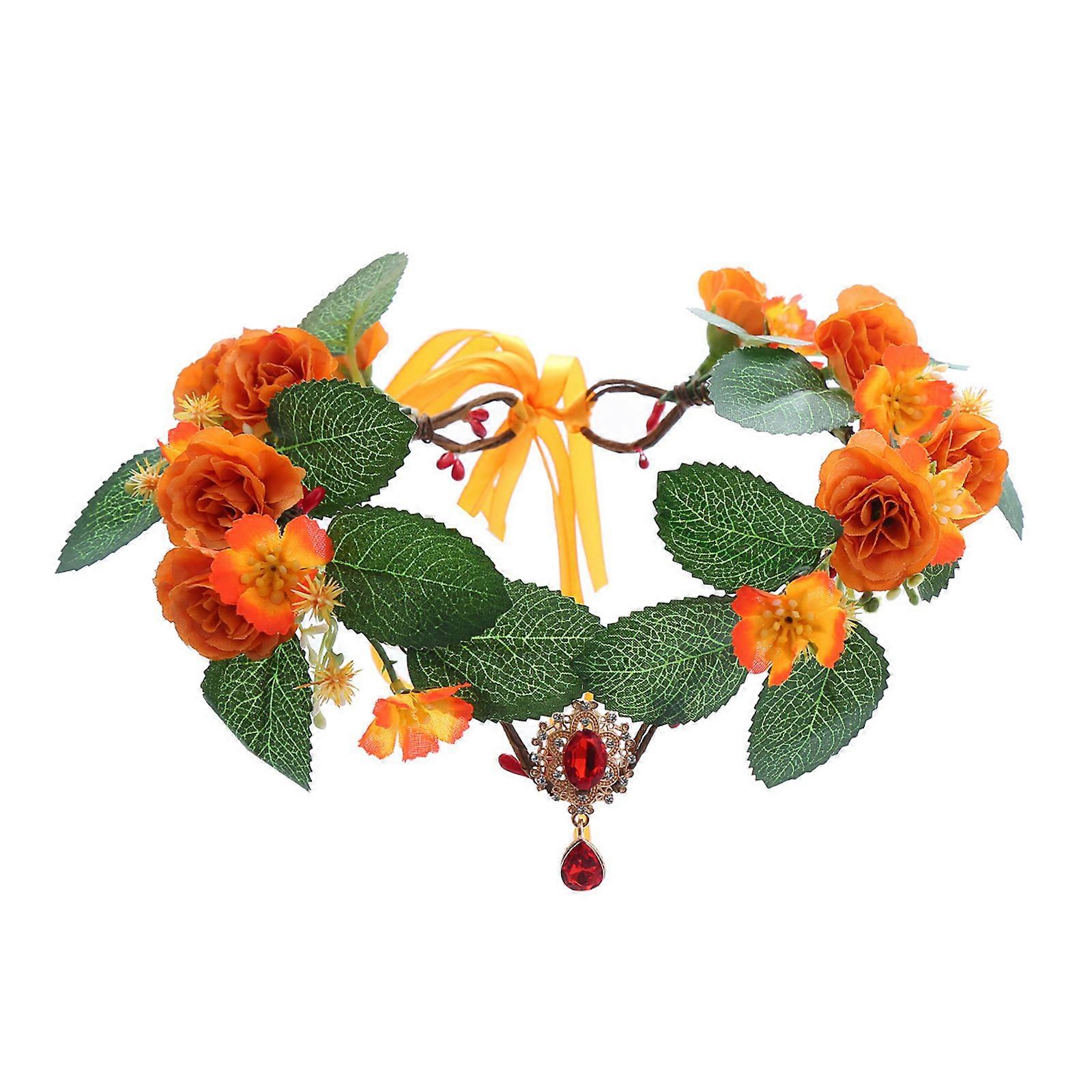 Cosplay Fairy Headband with Rhinestone Pendant Decors Ethnic Style Headband for Bride Flower Crown for Wedding Party orange