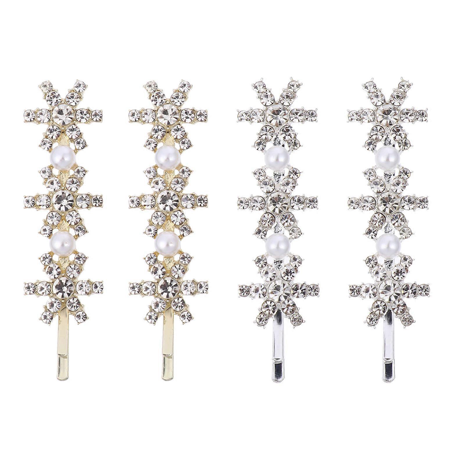 Rhinestone Hairpin Snowflake Hair Barrettes Women's Hair Gripping Accessory Gold Color 4Pcs