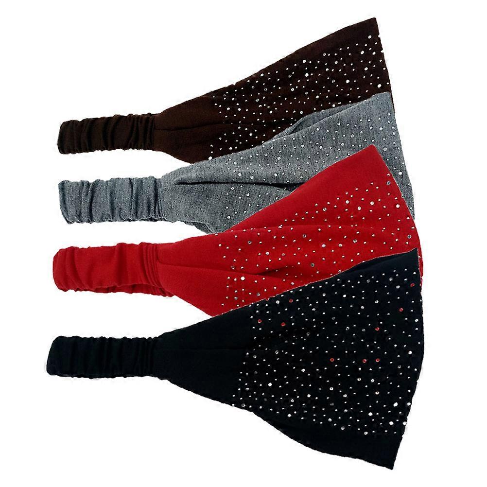 Rhinestone Headband Women Stylish Hair Bands Comfortable To Wear Brown 4Pcs